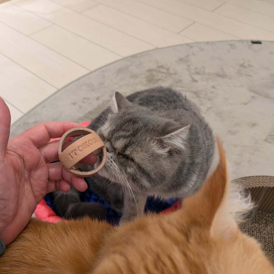 大きさは、大型の猫様でも誤飲しにくいサイズになっています。(約φ50mm)