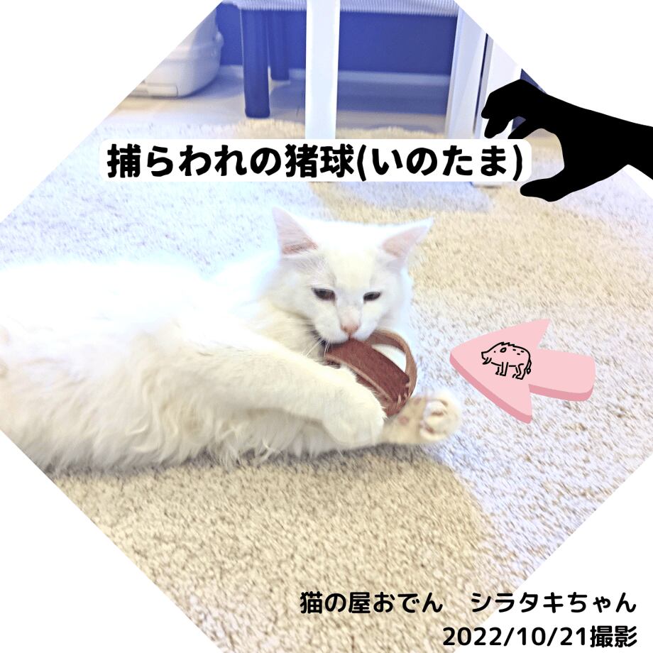『猪球(いのたま)』は、無心で追いかける猫様の口に、危険な薬品が入らない様に、クロムやホルマリン、化学染料等、一般的な革製品にい使用されているような薬品は一切使用していません。