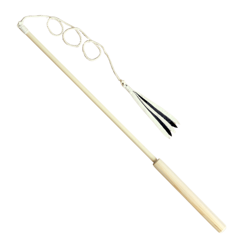 スティックの丈夫さと釣竿タイプの楽しさを兼ね備えた『鹿革ひらひら 釣竿タイプ』